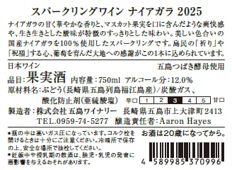 12/20解禁 ナイアガラ  スパークリングワイン2025(白)
